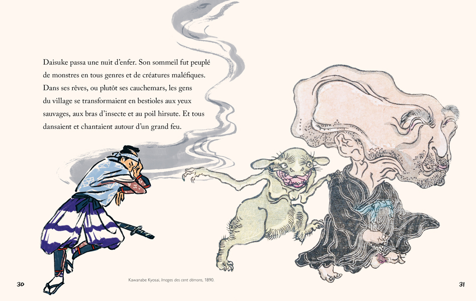 Nombres de yokai peuplent ce livre… Estampes et dessins sont égrenés dans ce récit fantastique.