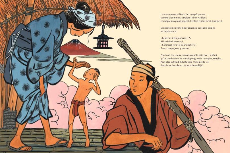 Naoki est arrivé nouveau-né un jour d’hiver et de grand vent, déposé par une vague géante sur le bateau de Taro. Depuis, sept années ont passé : mais Naoki reste petit, tout petit. Doit-il, pour grandir, se tourner vers l’océan ? La réponse lui viendra d’un fabuleux poisson d’argent…